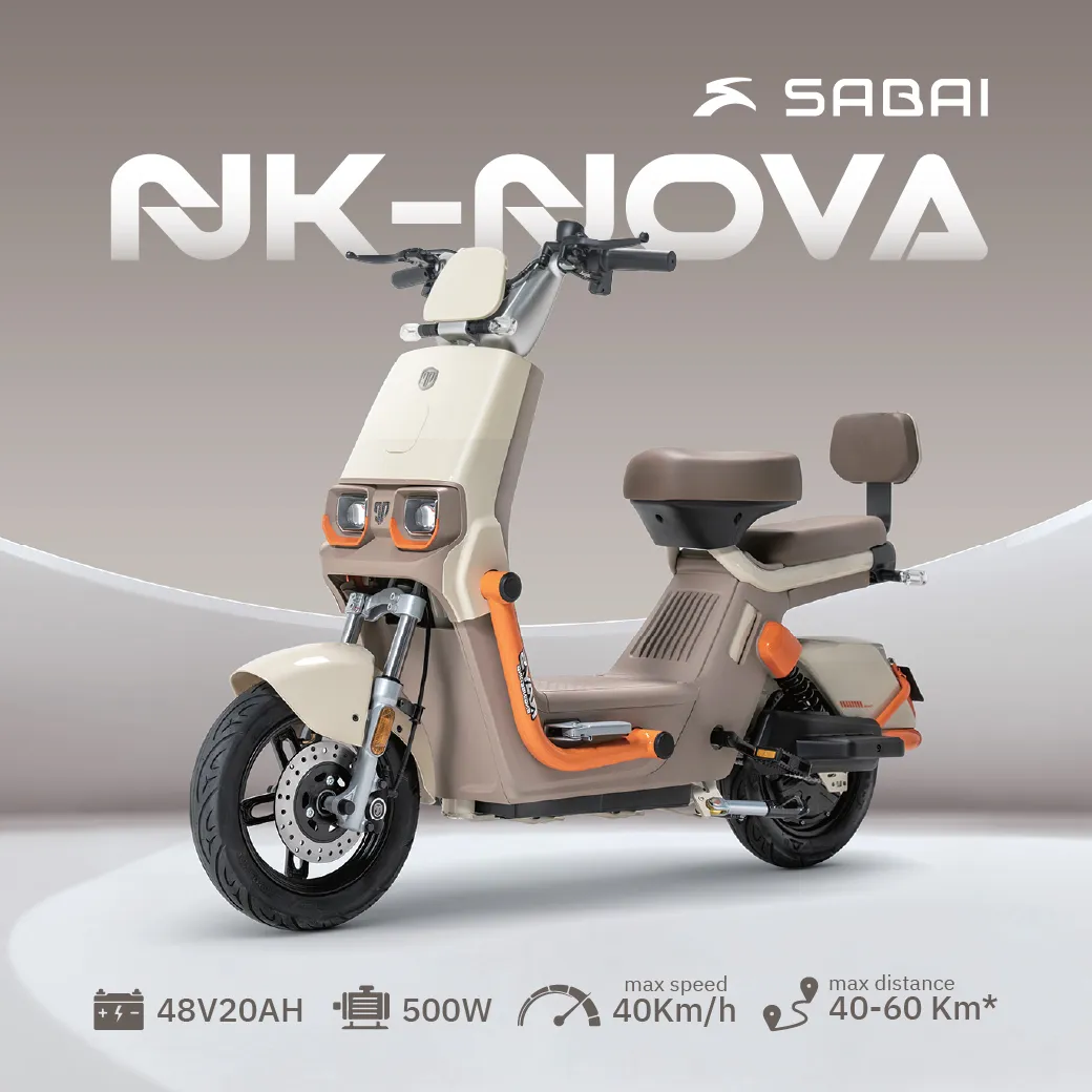 รถไฟฟ้า 2 ล้อ รุ่น NK-Nova ราคา 17,900 บาท รถไฟฟ้าดีไซน์ล้ำ ดูทันสมัย ผสานกับความวินเทจอย่าง ลงตัว ไฟหน้าคู่ดีไซน์เลนส์ซูมาร์ คานกันกระแทกสีสันสดใสตัดกับตัวรถ รถแรงวิ่งได้ไฟด้วยแบตเตอรี่ 48V20AH และมอเตอร์ 500W สามารถวิ่งได้ไกลสูงสุด 60 กม.