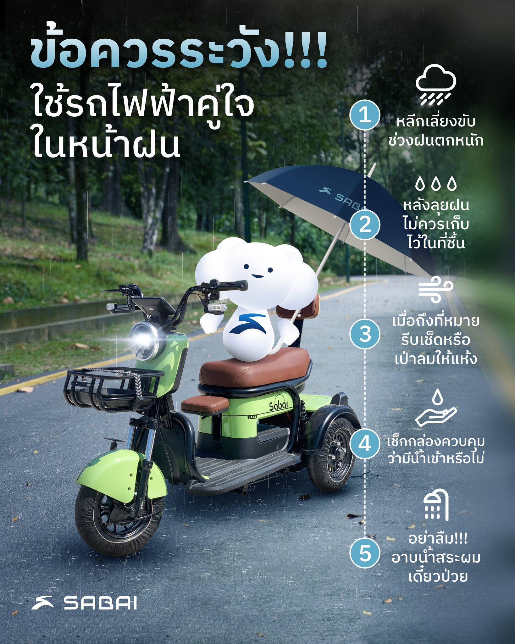 ข้อควรระวัง ใช้รถไฟฟ้าคู่ใจในหน้าฝน