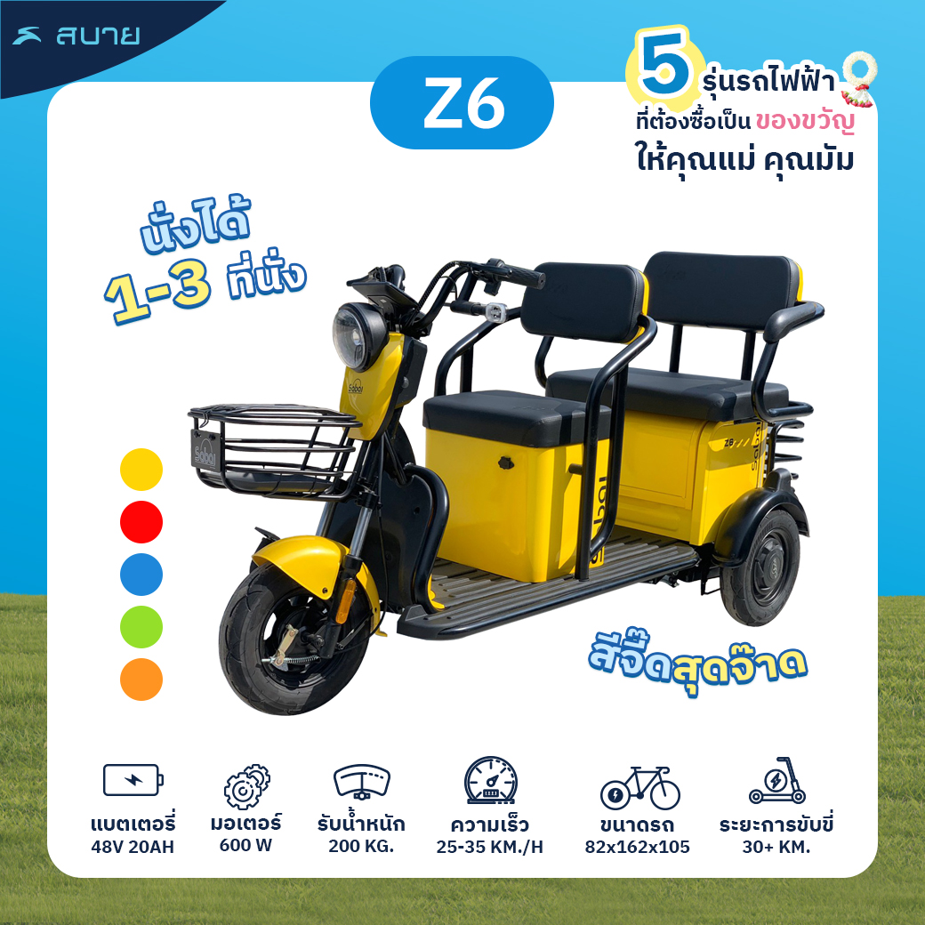 Z6 รถ 3 ล้อ ที่นั่งได้ 1-3 ที่นั่ง จะพาลูกๆ หลานๆ ไปเที่ยวด้วยก็สุขใจ