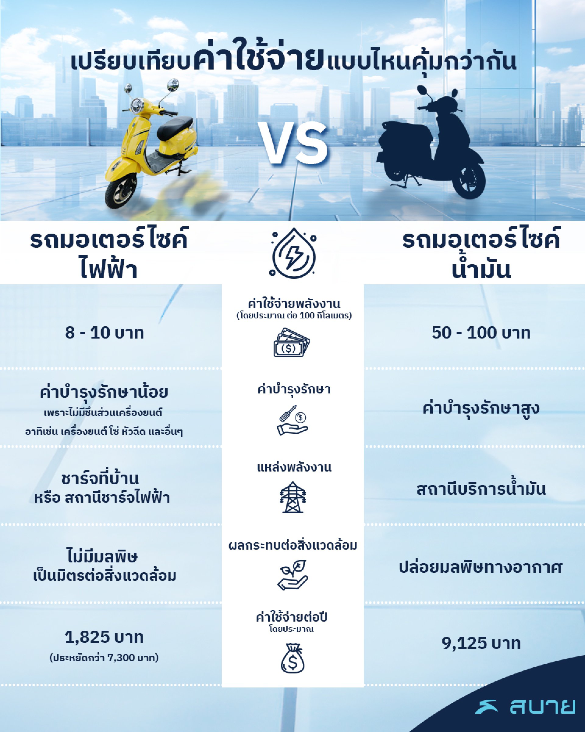 สบายรถไฟฟ้า รถมอเตอร์ไซค์ไฟฟ้า VS น้ำมัน